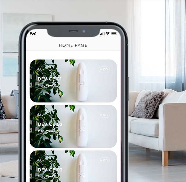 The Fresh Home mobile app allows you to easily manage your aroma settings.